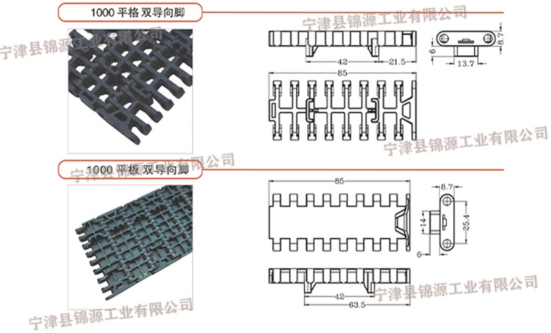 塑料網(wǎng)帶是利用工程塑料制作的鏈板拼裝而成的,模塊式網(wǎng)帶以互鎖方式或砌磚方式相互交錯(cuò),并由全長(zhǎng)銷桿組裝在一起,這種設(shè)計(jì)從根本上提高了傳送帶的強(qiáng)度。擋板和側(cè)板也可以用鉸接銷互鎖,成為輸送帶整體部件之一。塑料網(wǎng)帶形式多樣,拼裝靈活,更換方便。有開(kāi)孔形式、平板、凸筋、滾珠、防滑等多種形式。適用于豬、羊、雞、鴨屠宰分切加工、膨化食品生產(chǎn)線、水果分級(jí)、包裝線、水產(chǎn)加工生產(chǎn)線、速凍食品生產(chǎn)線、電池制造生產(chǎn)、飲料制造業(yè)、制罐工業(yè)、農(nóng)業(yè)加工業(yè)、化工業(yè)、電子業(yè)、橡塑膠生產(chǎn)業(yè)、化妝品業(yè)、一般輸送作業(yè)。